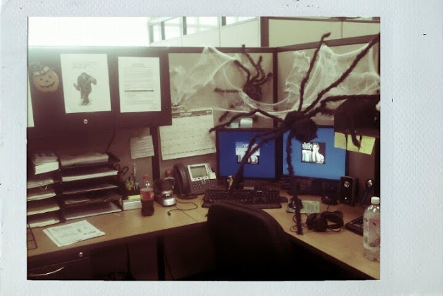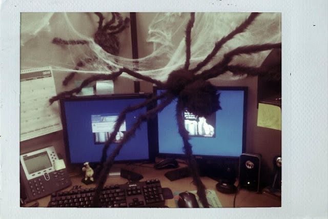 SpiderBombed! Posted on October 15, 2010 by cherryteresa My department just spiderbombed my coworker’s cubicle. Category: Blog