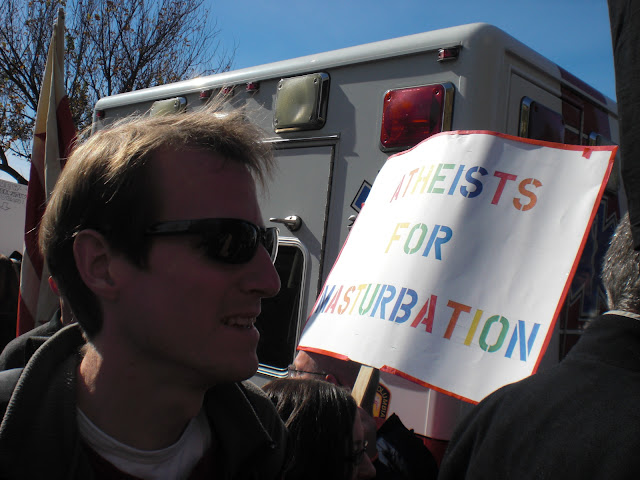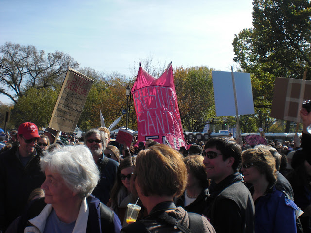 Here are some photos from the Rally to Restore Sanity and/or Fear. I think the best sign I saw (not pictured) was a guy carrying one that read, “Gay Muslim: I Will Blow You”.