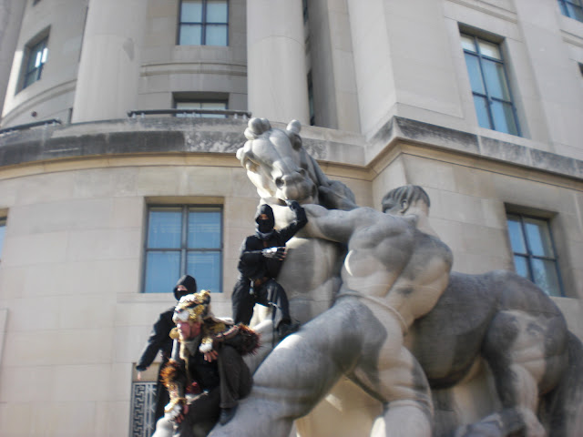 A few minutes later, I walked by the dragon while it was stopped. These guys got out and climbed up on a statue. Apparently, it was a Burning Man group. I’m not really sure what to make of it, but you can judge for yourself by watching this Washington Post video.